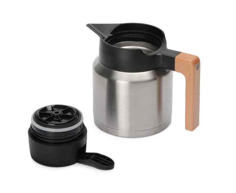 Двойные стенки с вакуумной изоляцией между ними защищают напиток от остывания, сохраняя температуру до 12 часов. Ручка из дерева имеет эргономичный дизайн, который позволяет не обжигаться при использовании.