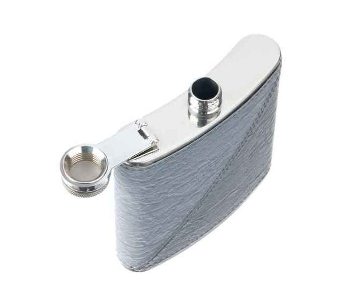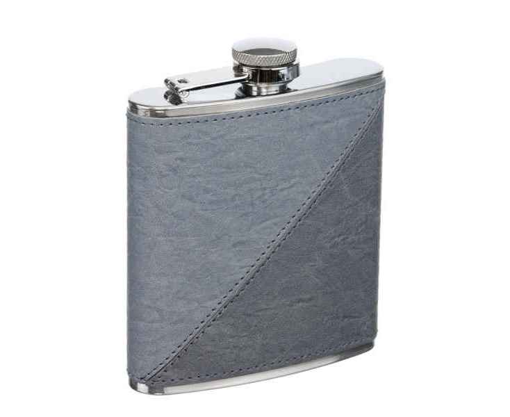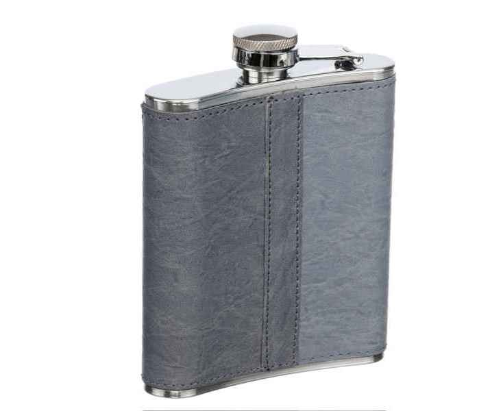 Фляга S.Quire 0,18 л, сталь+искусственная кожа, светло-серая