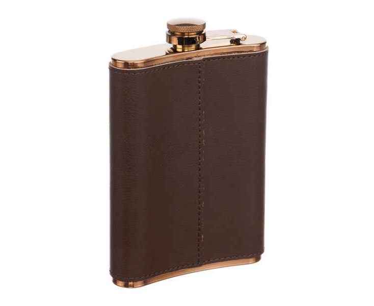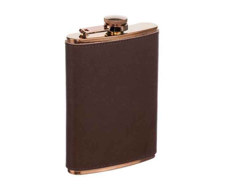 Фляга S.Quire 0,24 л, сталь+кожа спилок, коричневая