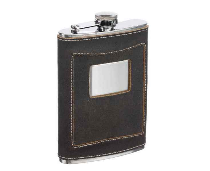 Фляга S.Quire 0,24 л, сталь+натуральная кожа, коричневая