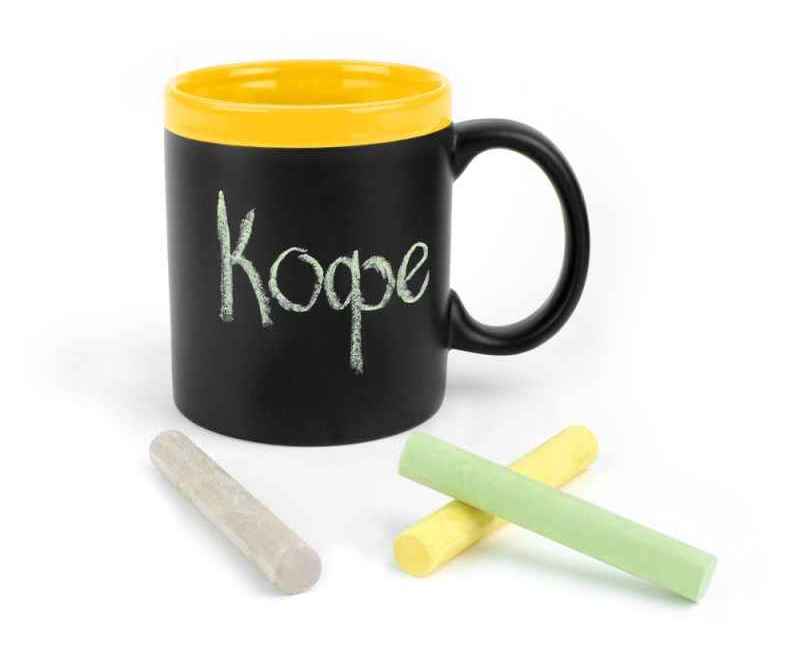 Оригинальная кружка на 320 мл имеет специальную поверхность, на которой можно рисовать мелками, тем самым меняя дизайн кружки каждый раз. Необычный и полезный подарок для родных и друзей. Мелки в комплект не входят.
