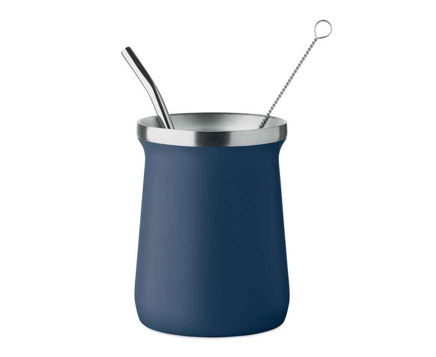 Двустенная кружка для мате из переработанной нержавеющей стали 90% и 10% нержавеющей стали. В комплекте трубочка из нержавеющей стали и щеточка для чистки. Объем: 240 мл.