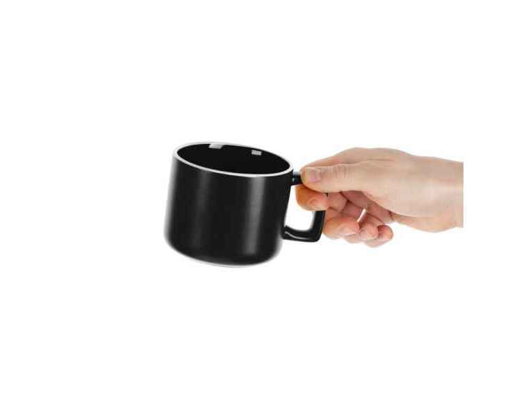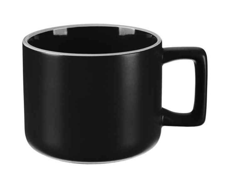 Глазурь спокойных оттенков, матовая снаружи и глянцевая внутри, графичная прямоугольная ручка — с чашкой Fusion не захочется расставаться.