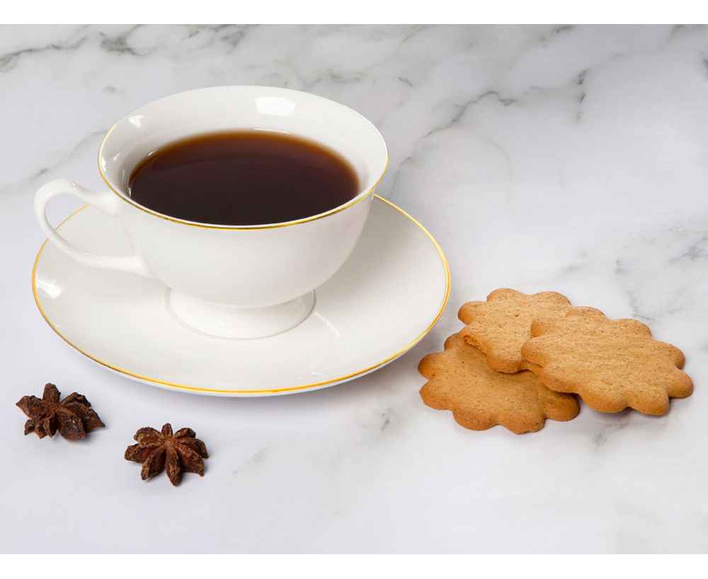Изящная чайная пара с золотистым кантом от Eat&Bite создаст особенную атмосферу чаепития по-английски.