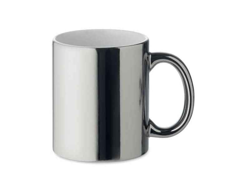 Классическая керамическая кружка цилиндрической формы с металлической отделкой. Объем : 300 мл.