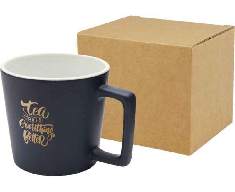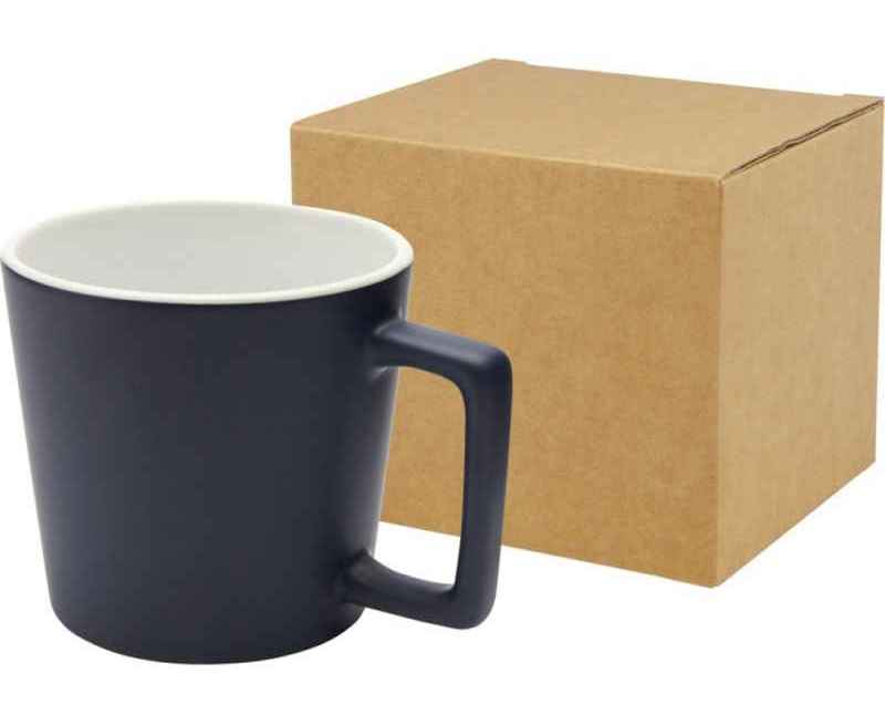 Керамическая кружка с современным дизайном и матовой отделкой. Объем 370 мл. Можно мыть в посудомоечной машине. Поставляется в упаковочной коробке из переработанного картона. Керамика.