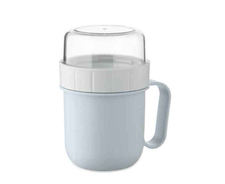 Кружка и контейнер с пластиковой крышкой для перекуса на ходу. Состоит из 2 отделений емкостью: 450 мл и 160 мл. Герметичный.