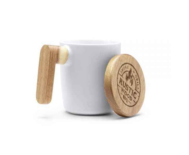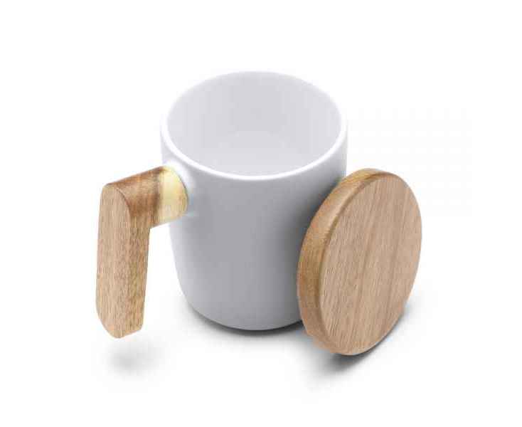 Матовая керамическая кружка с бамбуковой крышкой и ручкой – стильный и функциональный выбор для наслаждения любимыми напитками. 350 мл