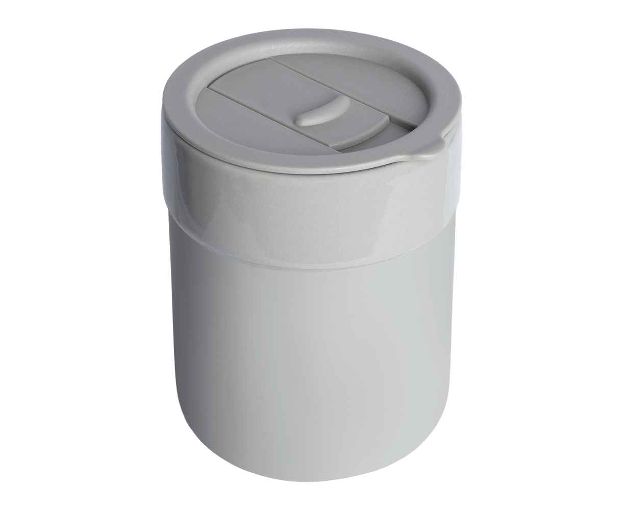 Цвет кружки, крышки, силиконовой манжеты - серый, максильно приближен к Pantone 422 С.