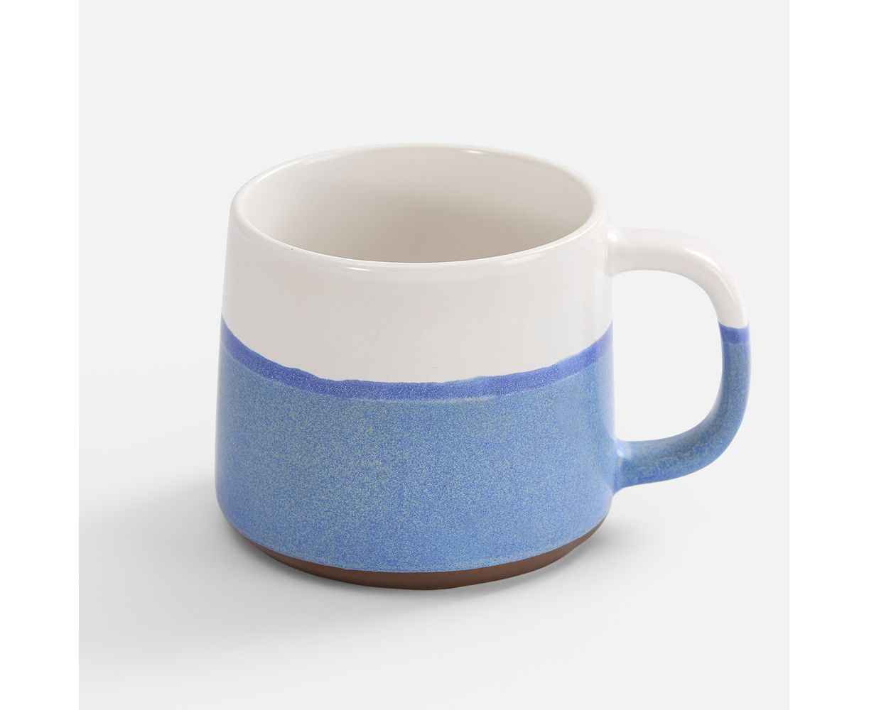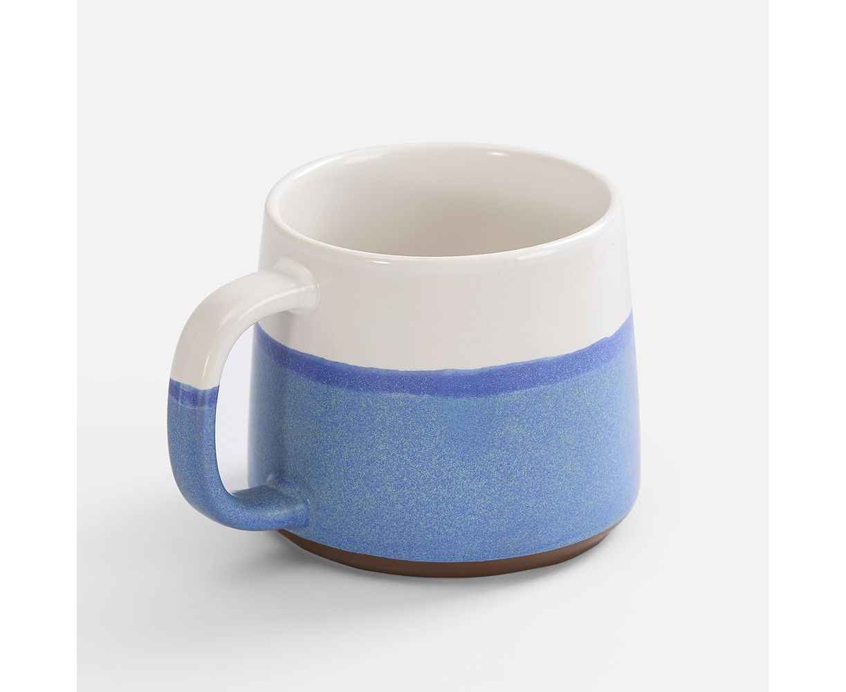 Нижняя половина кружки покрыта реактивной глазурью — особым видом керамического покрытия, компоненты которого вступают в химическую реакцию во время обжига при температуре 1200°C и выше. Из-за непредсказуемого взаимодействия компонентов создаются уникальные переливы, узоры и текстуры, поэтому в партии невозможно найти два абсолютно одинаковых изделия.