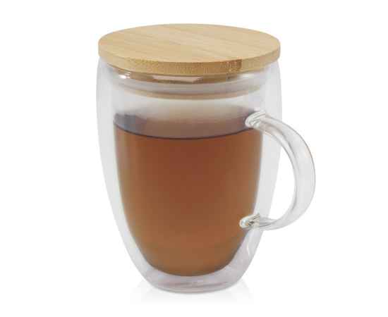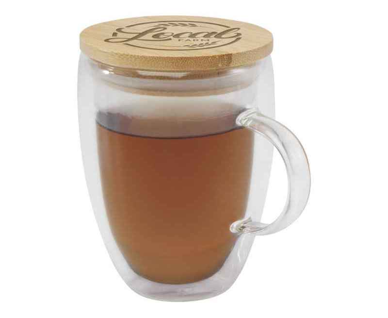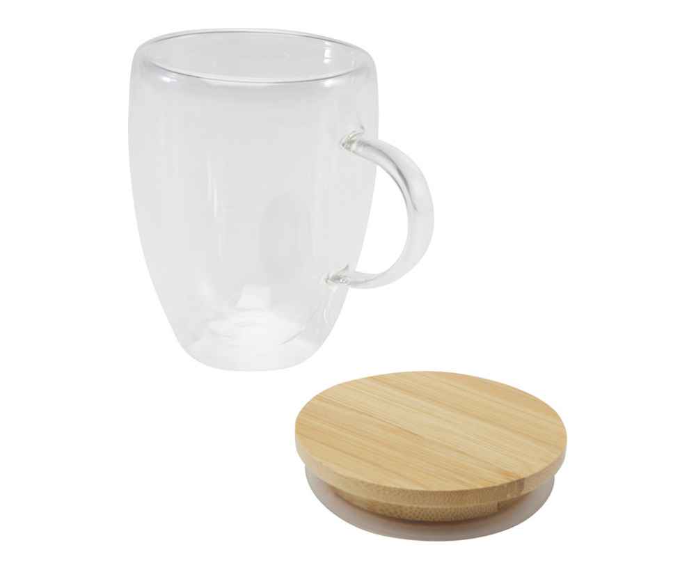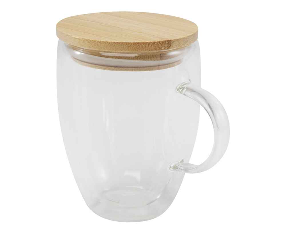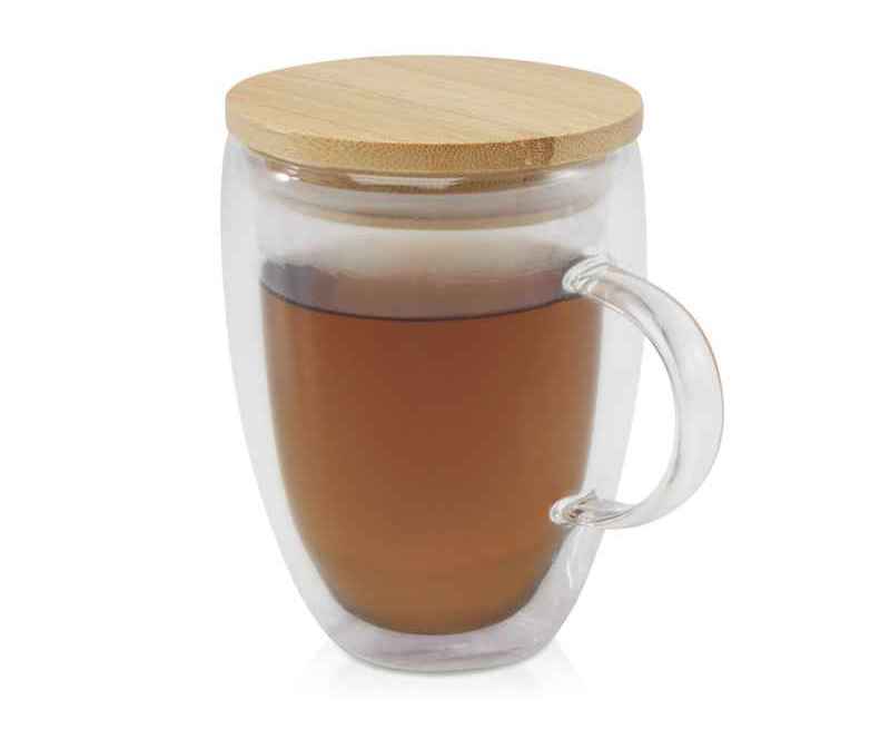 Стеклянная кружка Leona объёмом 350 мл с двойными стенками и стильной бамбуковой крышкой. Она дольше сохраняет температуру напитка, помогает избежать проливов и бережно удерживает его аромат. Идеальный выбор для уютного чаепития или кофе-паузы.