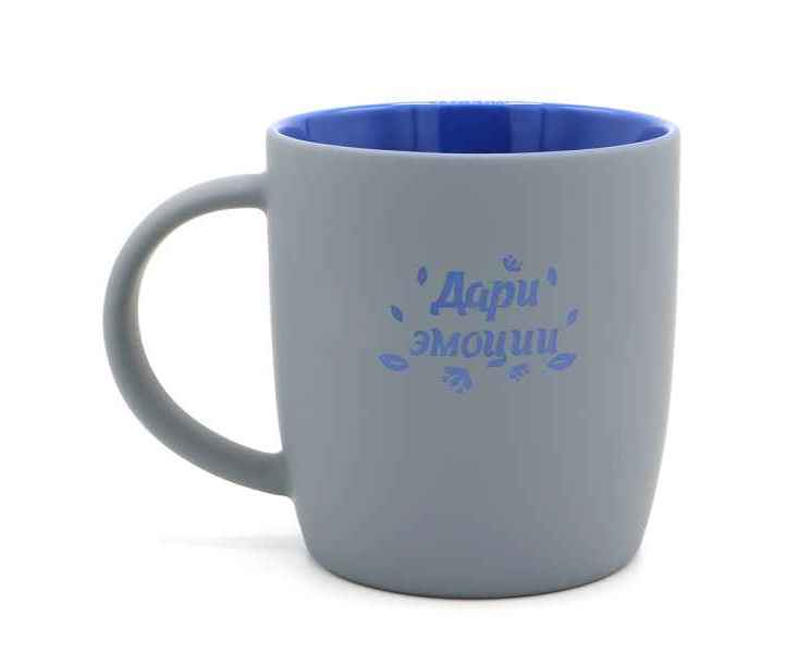 В кружке Spring под покрытием софт-тач слоя нанесен слой глазури такого же цвета, что и внутри; и при гравировке вы получаете яркое цветное изображение.