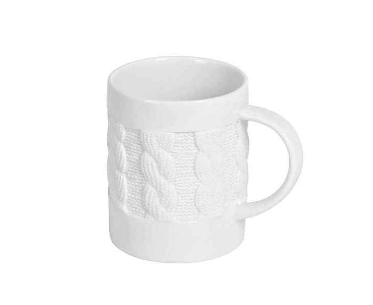 Фарфоровая кружка с вязаным рисунком – идеальный выбор для холодного времени года. Ее необычный дизайн притягивает взгляды, вызывает желание взять в руки и потрогать. Иллюзия вязки создается благодаря вязаному рисунку, который не покрыт глазурью. Матовые косы выглядят очень натурально, поэтому кажется, что они и правда связаны из самого фарфора. Вместительность кружки покорит истинных любителей чая – с ее объемом в 400 мл напитка хватит надолго. А широкая ручка удобно лежит в ладони, не утомляя руку. Верхняя и нижняя части кружки предназначены для персонализации.