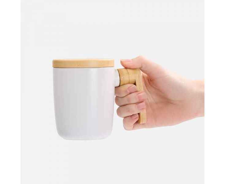 Стильная кружка с крышкой и ручкой из бамбука станет самой любимой на полке! Это идеальный компаньон для продуктивного диалога или умиротворяющего уединения.