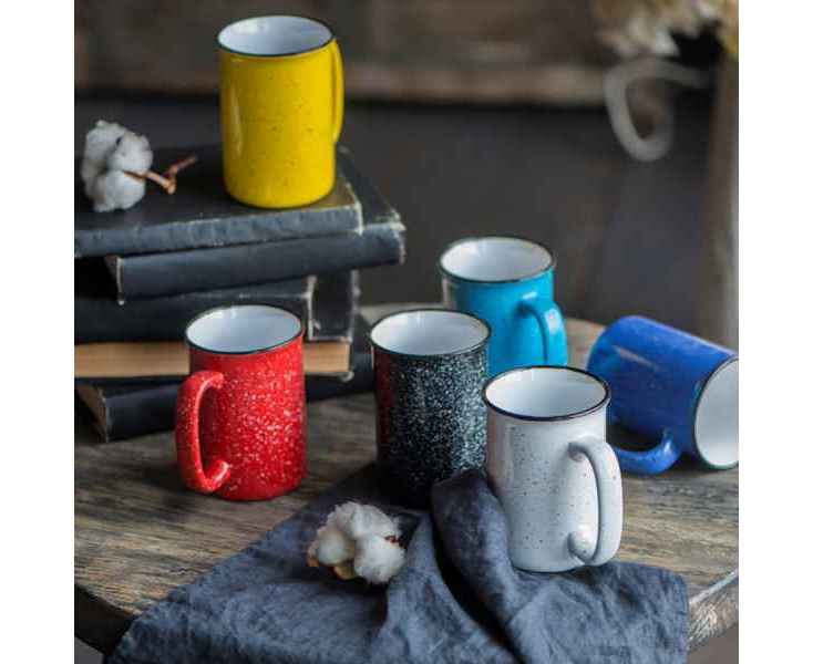 Необычный дизайн,кружки получился путем создания эффекта брызг на поверхности. Они нанесены неравномерно и лишь подчеркивают уникальность каждой кружки. Точки краски различной величины напоминают хаотично разбросанные по ночному небу звезды. , Вместительная кружка с очень удобной ручкой.