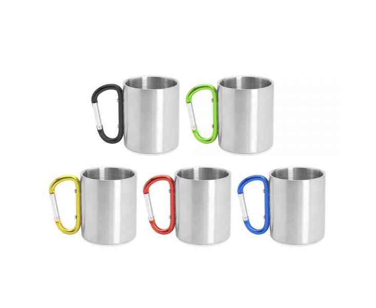 Металлический кружка с двойными стенками и ручкой-карабином идеально подходит для переноски. Доступен в нескольких цветах. Вместимость 230 мл.