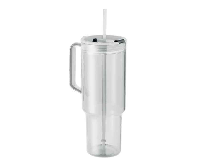 Термостакан из переработанного пластика с крышкой-трубочкой из полипропилена. Объем: 1200 мл.