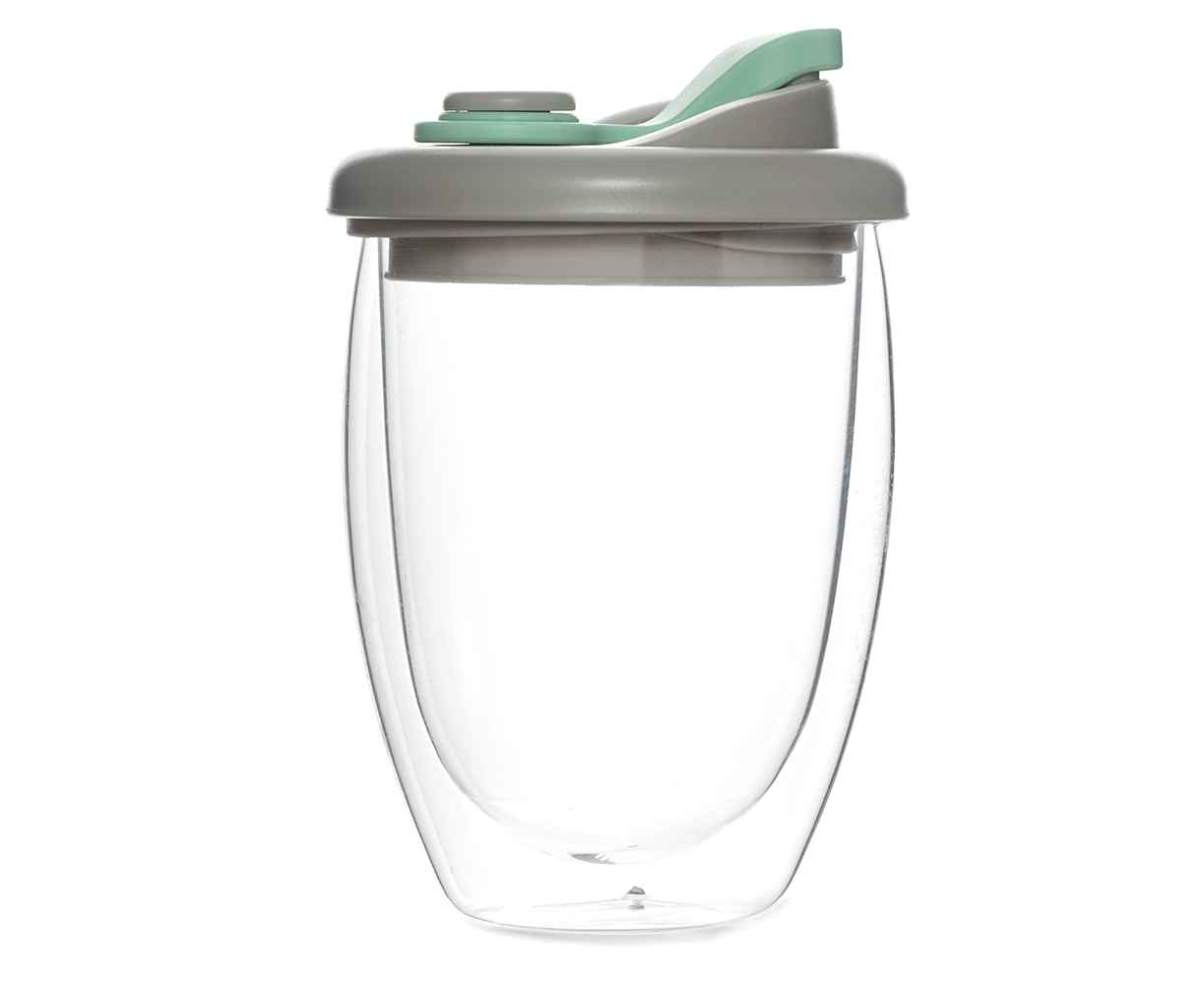 Подробнее о Стакан стеклянный Lotos с двойными стенками и крышкой, бирюзовый