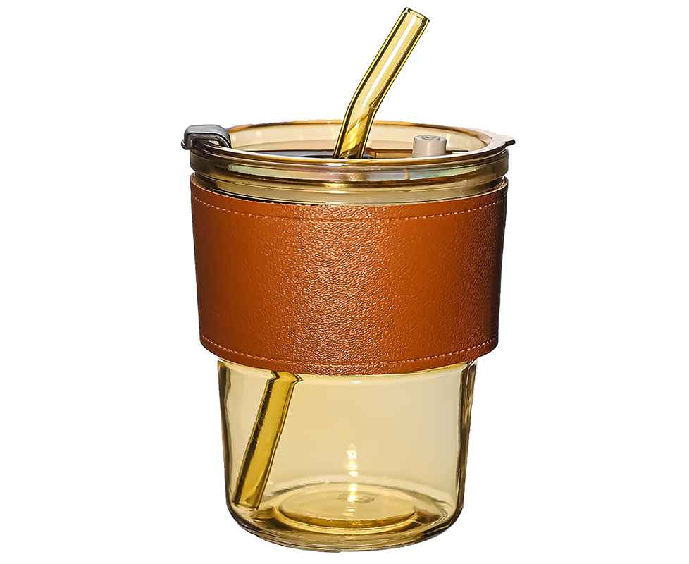 Стакан стеклянный с трубочкой и капхолдером 'Karamel' выполнен в стильном дизайне. Наличие капхолдера защитит руки от ожогов или замерзания от налитых напитков. Стакан имеет утолщенное дно. Вы можете комфортно пить напиток при открытом клапане, а также наслаждаться прохладительными напитками без трубочки при открытой крышке стакана.