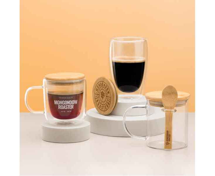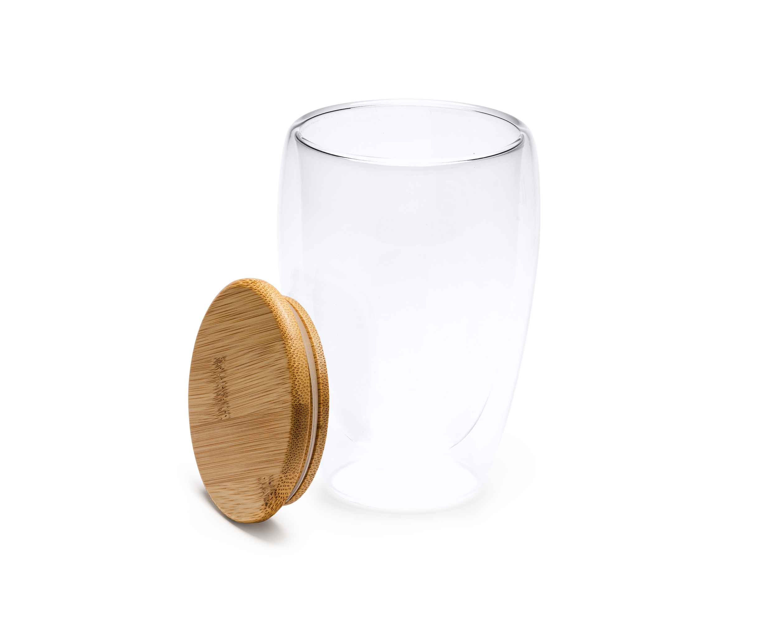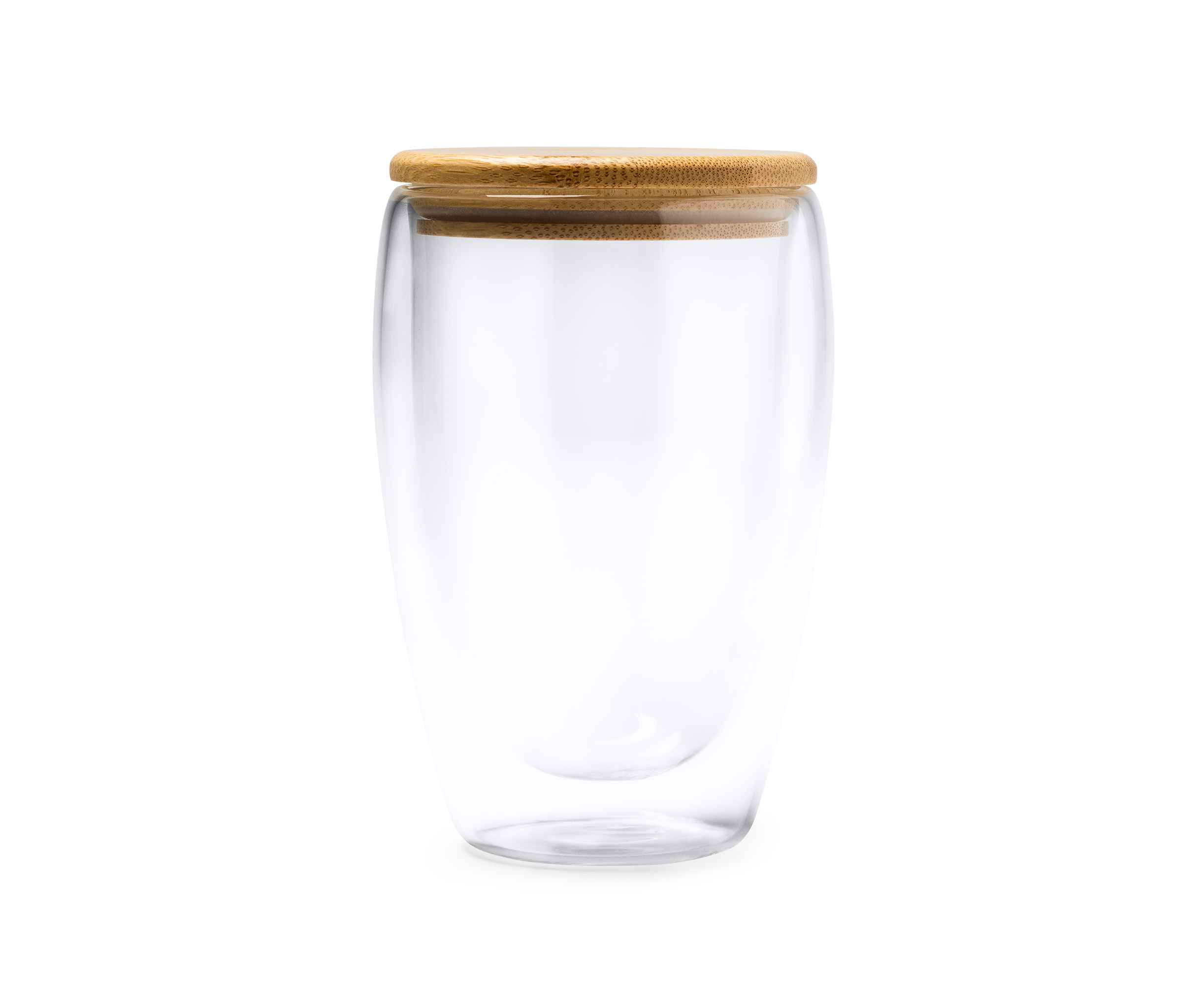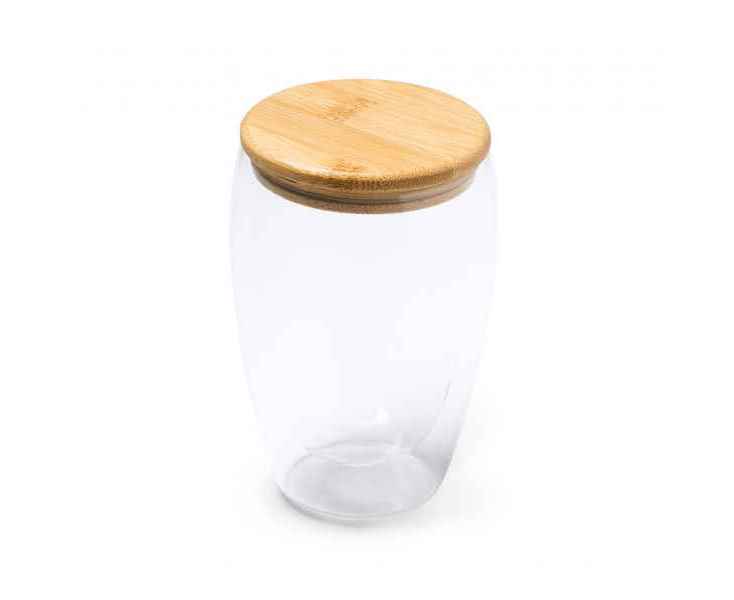 Двустенный стакан из боросиликатного стекла с бамбуковой крышкой. Идеально подходит для подарков и сюрпризов вашим клиентам. Емкость 350 мл.