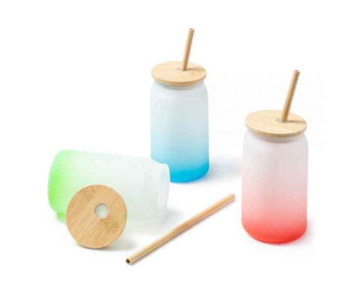 Цветное боросиликатное стекло с эффектом льда. Бамбуковая крышка и соломинка. Объем 350 мл. Идеальная чашка с градиентным цветовым дизайном, идеально подходящая для вашего бизнеса.