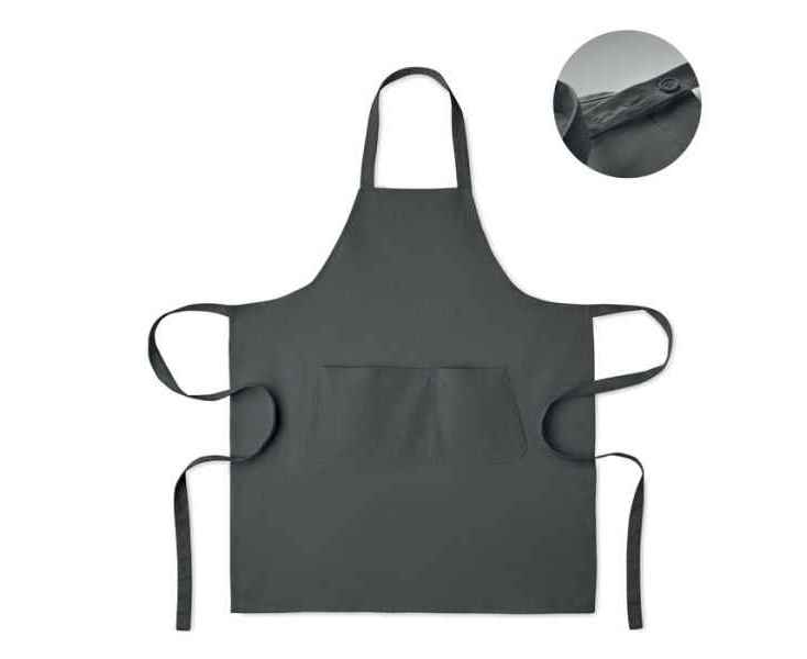 Кухонный фартук с большим передним карманом и двумя отделениями из органического хлопка плотностью 240 г/м². С регулируемым шейным ремешком.