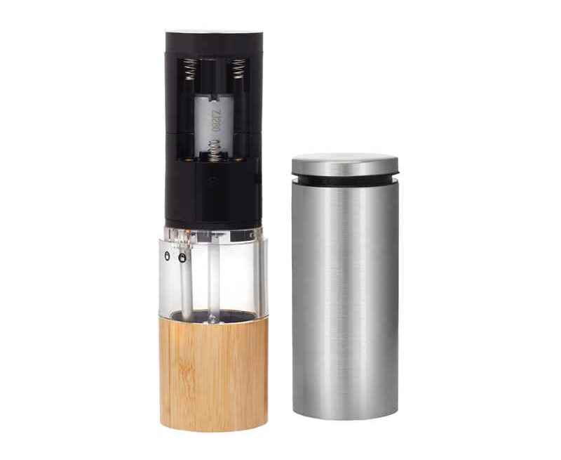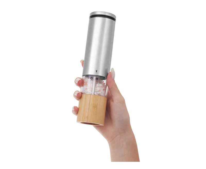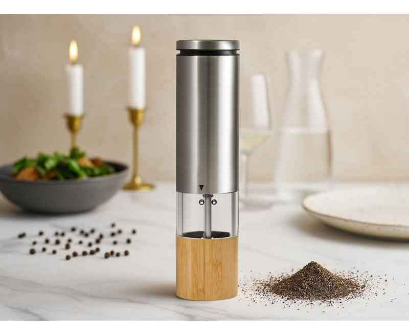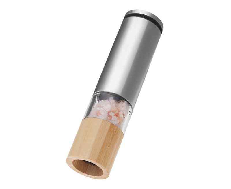 Элегантный и практичный корпоративный подарок, который добавит вкуса в любую кухню — электрическая мельница для специй, сочетающая трендовый дизайн и современную функциональность. Работает от 6 батареек AAA и легко справляется с солью, перцем и другими специями.