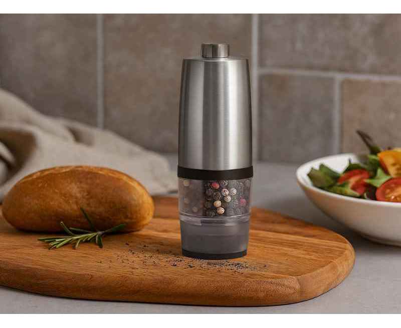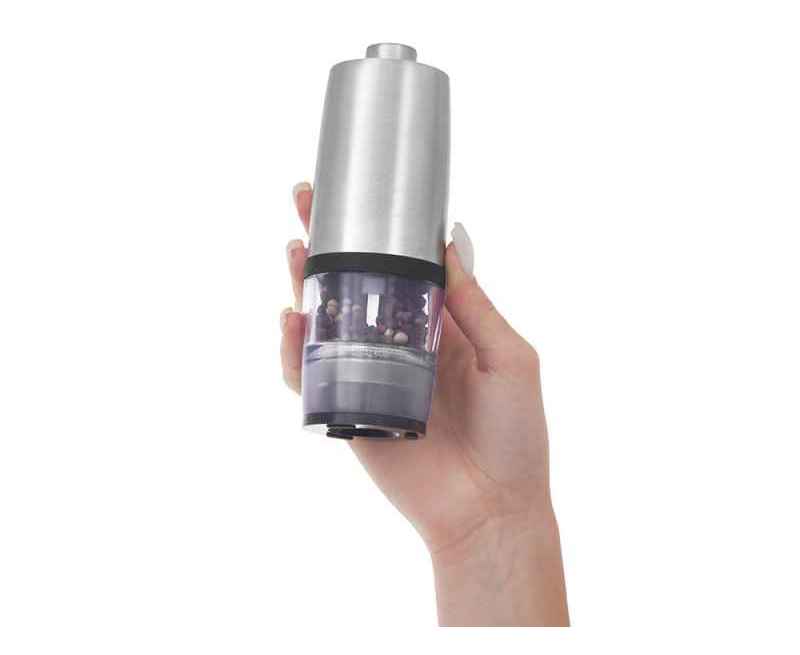 Современная и удобная электрическая мельница для соли, перца и других специй. Работает от 4 батареек AAA (не входят в комплект) — одним нажатием измельчает специи до нужной степени помола.