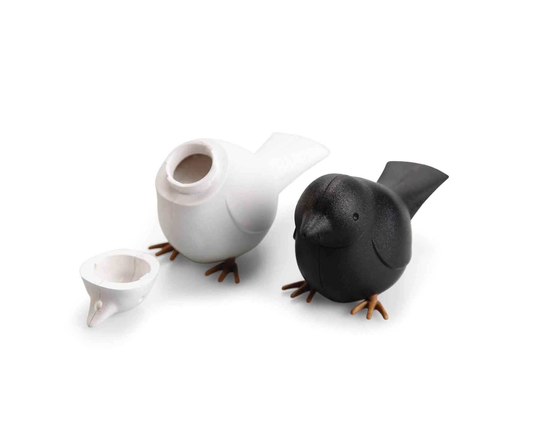 Набор для специй – необходимая вещь на каждой кухне. Солить или перчить блюдо из пакетика с солью или перцем очень неудобно… Особенно, если это не обычный ужин, а, например, какой-нибудь праздник. Набор солонка и перечница от компании Qualy отличается от других подобных наборов своей оригинальностью. Перед Вами не емкость для соли и перца, перед Вами две замечательные птички, одна из которых черная, а другая – белая. Очень качественно выполненные птички станут отличным дополнением к праздничному столу, или к обычному ужину. Купить солонку и перечницу можно и для себя, и в качестве подарка друзьям. Основные характеристики: