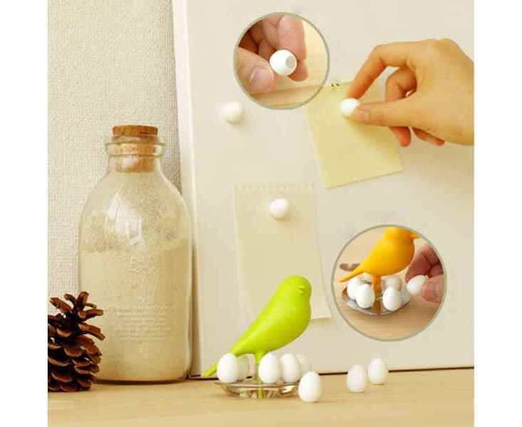 Набор магнитов на холодильник решает сразу несколько важных проблем: он украшает холодильник, делая его дверцу не такой однотонной и скучной, он может украсить собой всю кухню, конечно если это оригинальные и прикольные магниты, и еще, с помощью магнитов можно закрепить что-нибудь важное на холодильнике. Сувенирные магниты на холодильник от компании Qualy – лучший набор магнитов, который только можно себе представить. Они выполнены в уникальном дизайне, что позволяет им украшать собой целое помещение. Магниты выполнены в форме птичьих яиц, в комплекте с ними идет их мама-птица с подставкой, чтобы их можно было куда-то положить, когда они не используются. Также, Egg Magnets отлично послужат как магниты для магнитной доски в офисе. Благодаря их небольшому размеру, они не будут перекрывать важную записку или список дел, наполняя, при этом, помещение оригинальностью, а Ваше настроение – радостью. Основные характеристики: