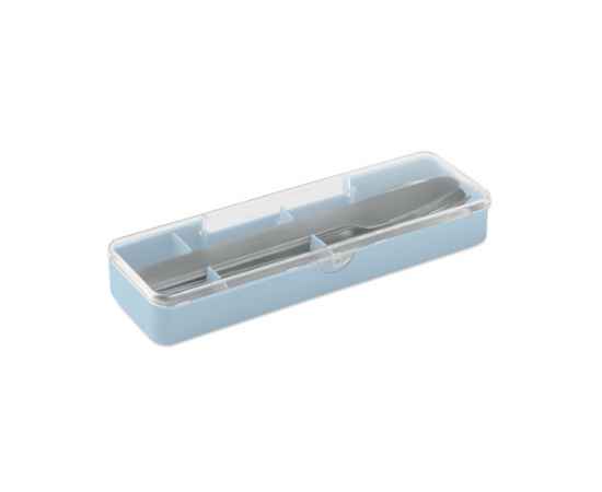 Набор столовых приборов из нержавеющей стали в полипропиленовом футляре. В набор входят вилка, нож и ложка.