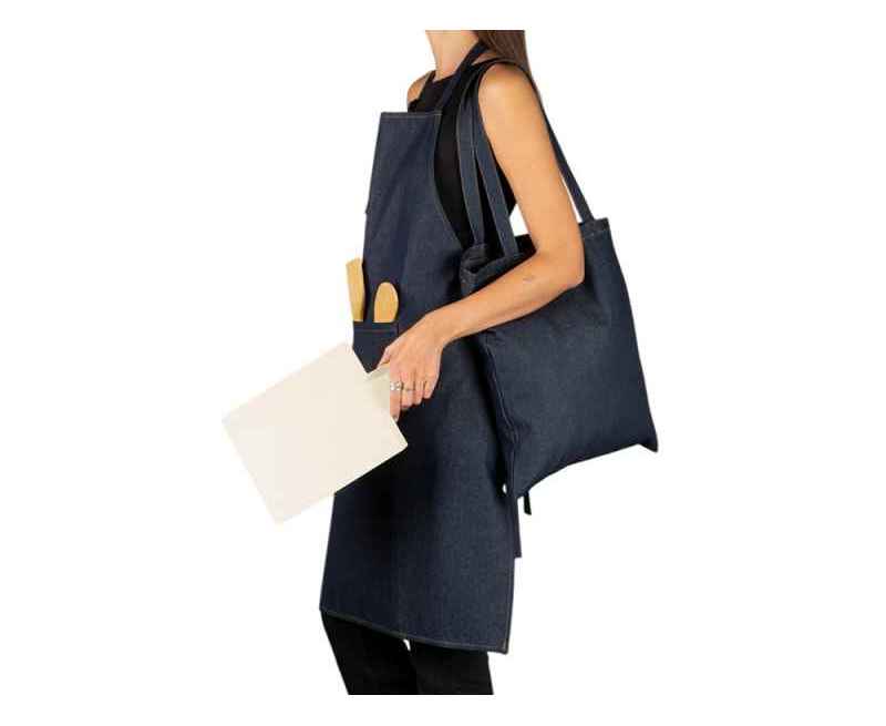 Стильные джинсовые фартук и шоппер подойдут не только женщинам, но и мужчинам; джинсовая ткань в оттенке индиго — необычное для рынка мерча и вместе с тем универсальное решение, которое органично впишется в любой кэжуал-образ. Большое поле для нанесения позволит дать волю фантазии и нанести оригинальный крупный принт.