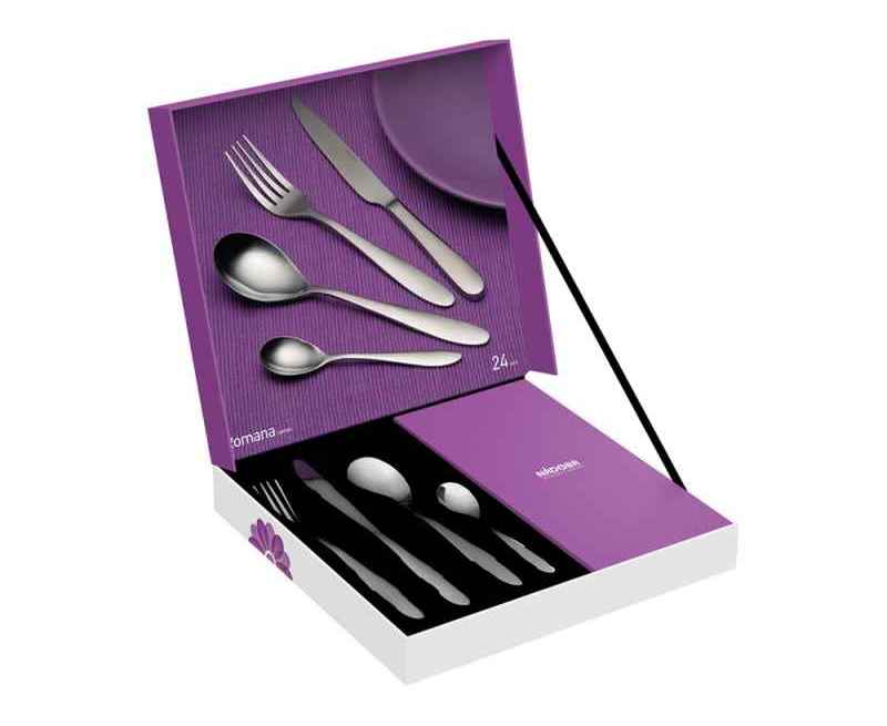 Приборы серии Romana изготовлены из высококачественной нержавеющей стали. Они устойчивы к механическим повреждениям и воздействию любых сред, не меняют вкус блюд и долгое время сохраняют превосходный вид, полученный благодаря высокой степени полировки.