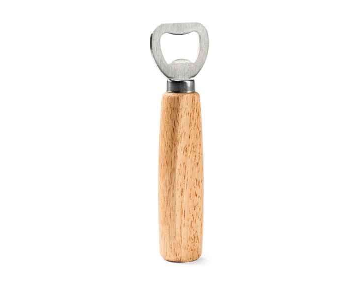 Открывалка из нержавеющей стали с рукояткой из натурального дерева.