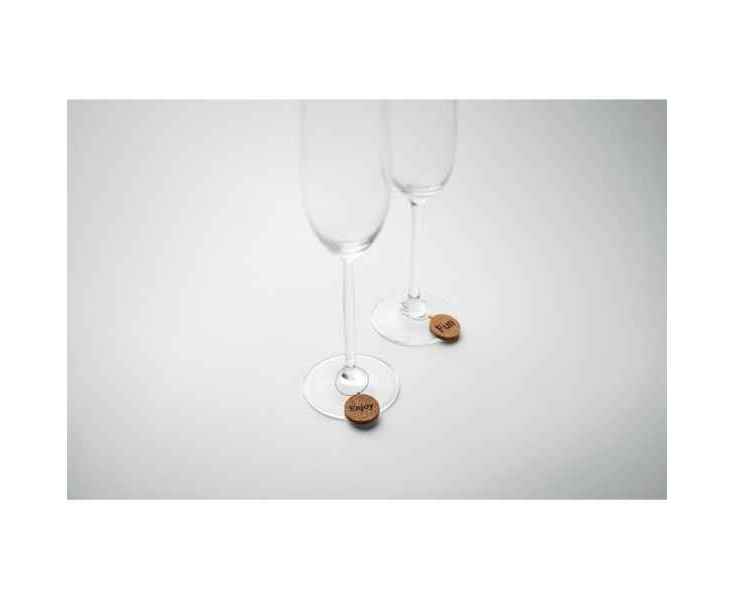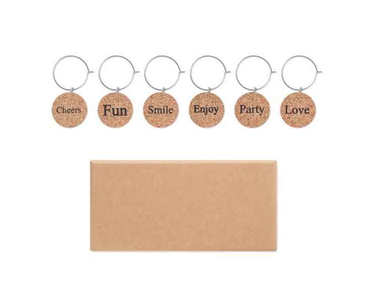 Набор из 6 подвесок из пробки. На одной из сторон печатается любое слово и подвеска фиксируется на ножке бокала..
