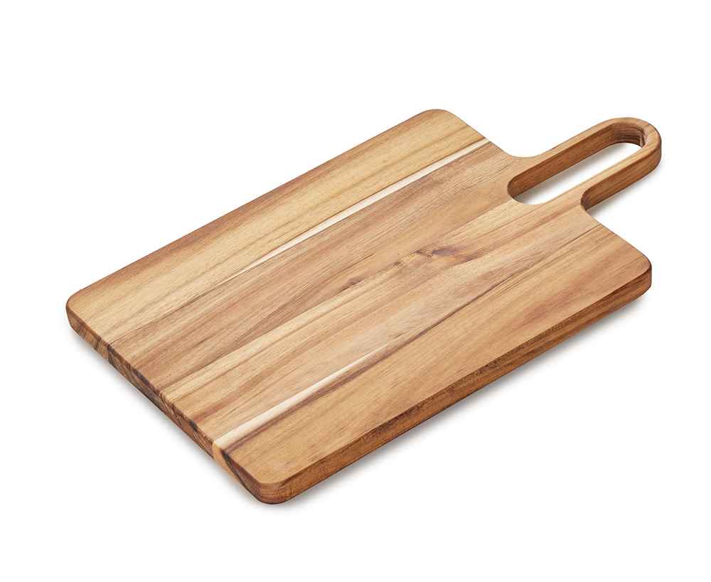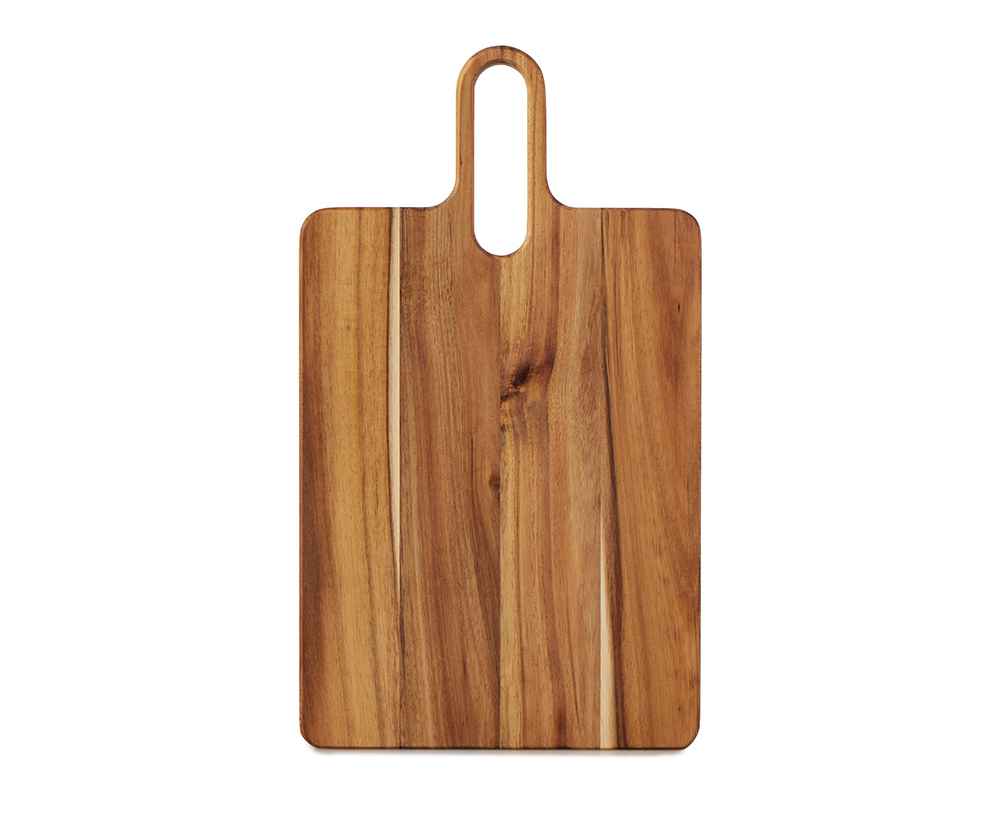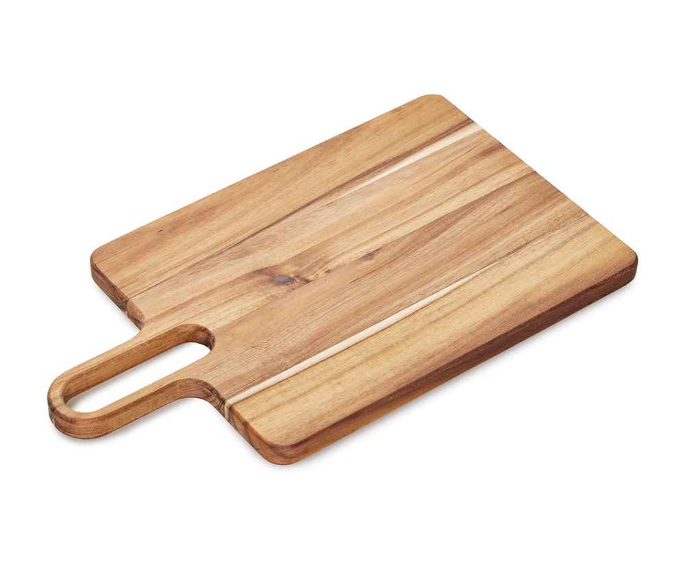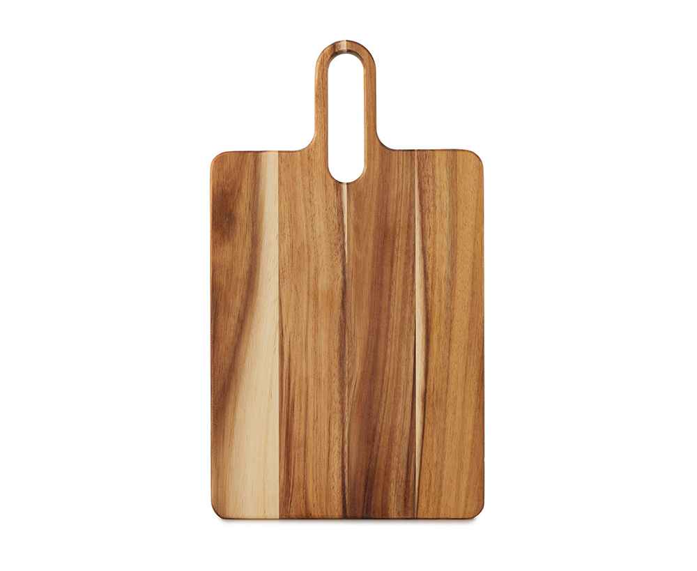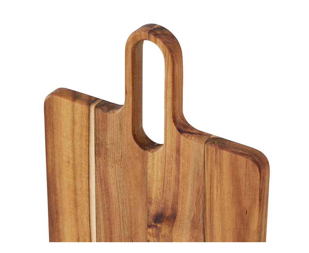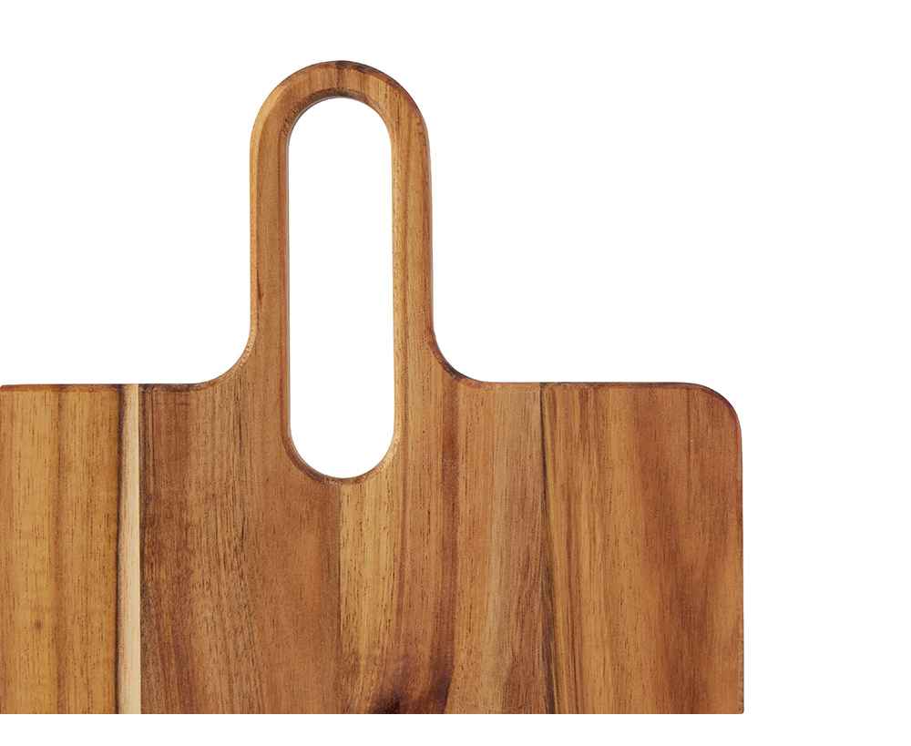 Разделочная доска Вэй выполнена из массива акации — прочного и влагостойкого материала, который устойчив к появлению царапин и деформации. Благодаря плотной структуре древесина не впитывает запахи и соки продуктов, что делает доску гигиеничной и безопасной в использовании. Благодаря удлиненной ручке доска удобно лежит в руке, а большое отверстие позволяет с легкостью повесить доску на крючок для хранения.