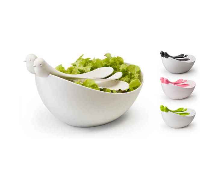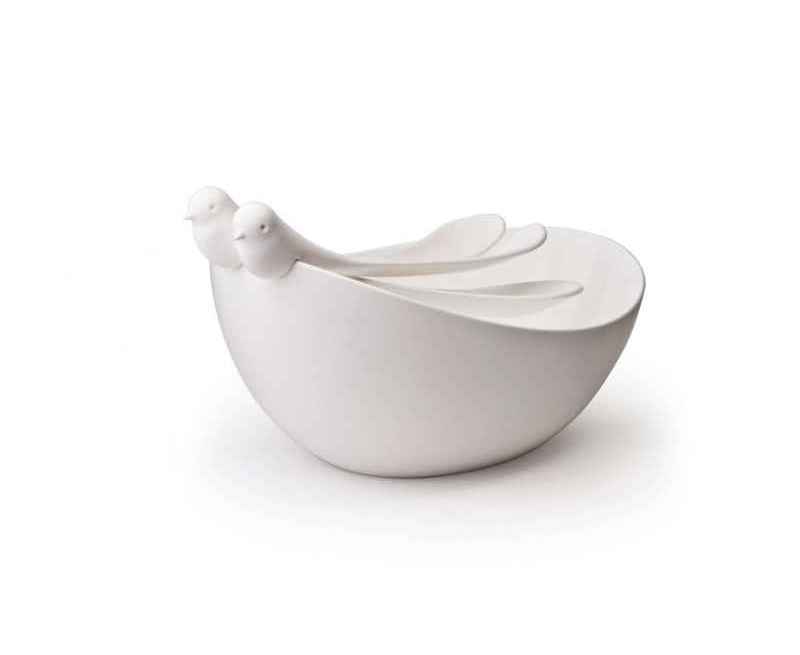 Необычная и стильная салатница с сервировочными ложками Sparrow приближает Вас к природе. В ней так и хочется приготовить аппетитный, полезный и свежий салат! Каждая пара птичек в природе поддерживает друг друга в постройке своего гнездышка! Так и птички, которые входят в набор Sparrow, выполняют роль вилки и ложки, тем самым помогая Вам в приготовлении любимого салата! Основные характеристики Sparrow: отличный подарок на кухню, оригинальный товар бренда Qualy.
