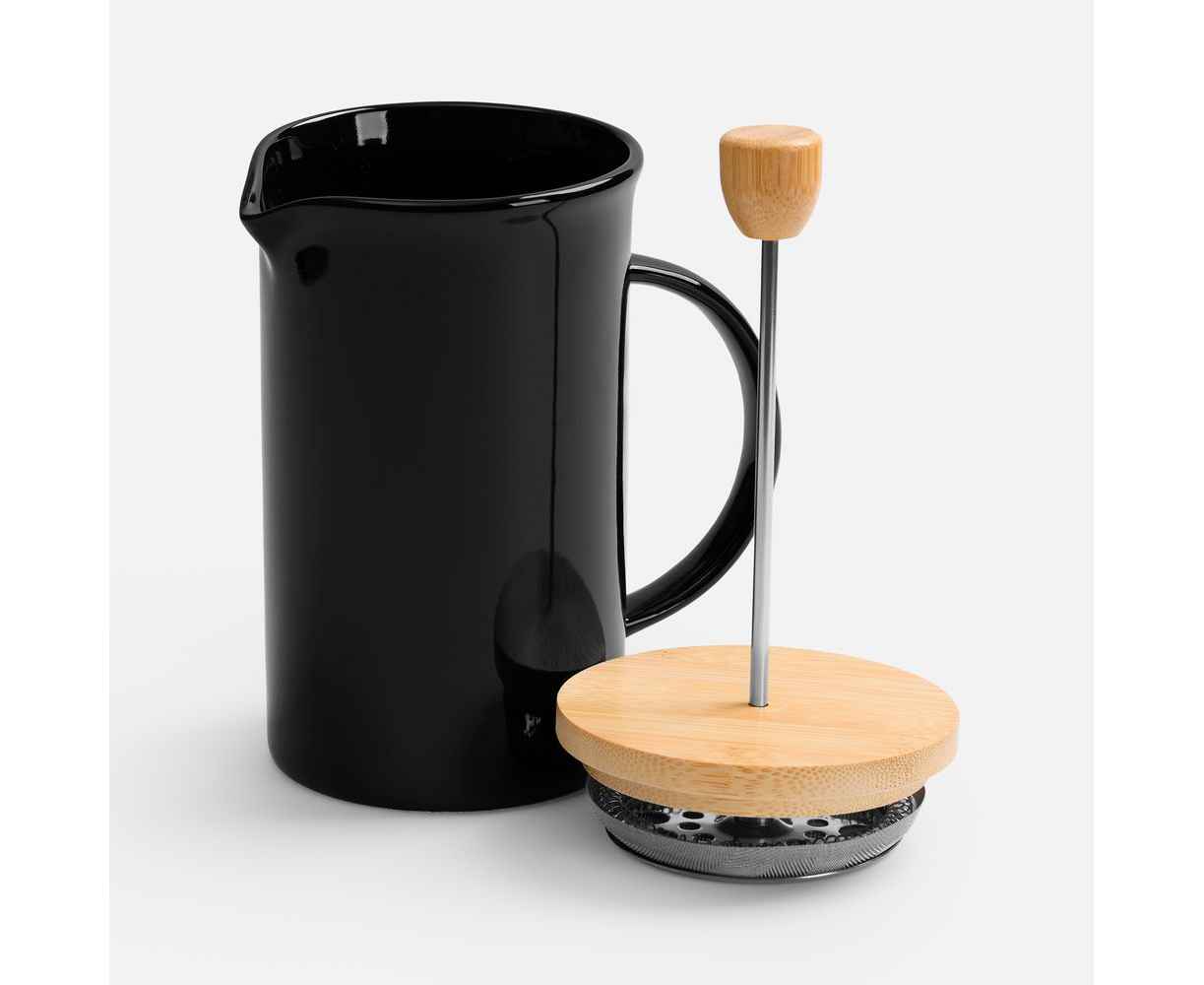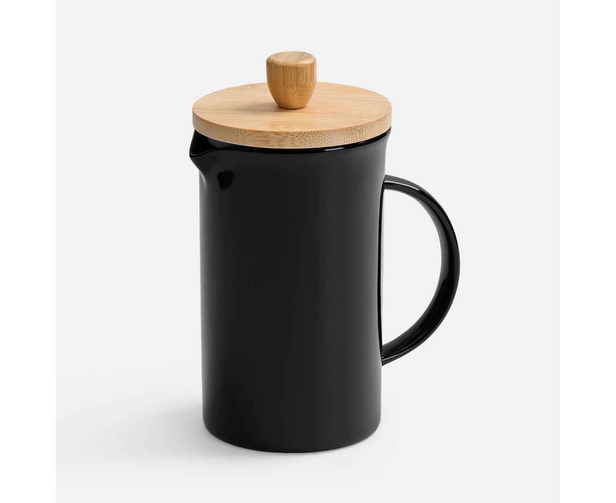 Элегантный керамический френч-пресс Mezzo в глянцевом черном исполнении — функциональный кухонный аксессуар и украшение любого пространства, от уютной домашней кухни до стильного офиса.Емкость 600 мл.