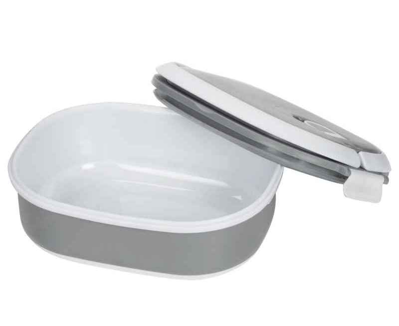Материалы — пластик и термопластичная резина, безопасные для контакта с пищей и рассчитанные на длительное использование. Ланч-бокс плотно закрывается, что помогает избежать проливаний, однако не является полностью герметичным — идеально для твёрдых и густых блюд.