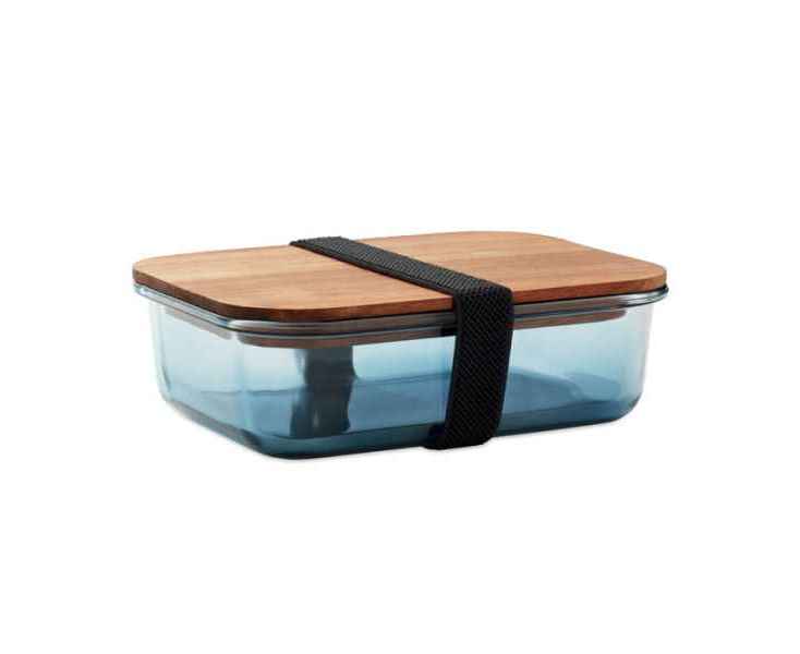 Стеклянный ланч-бокс с крышкой из древесины акации и эластичной лентой из RPET. Объём: 800 мл.