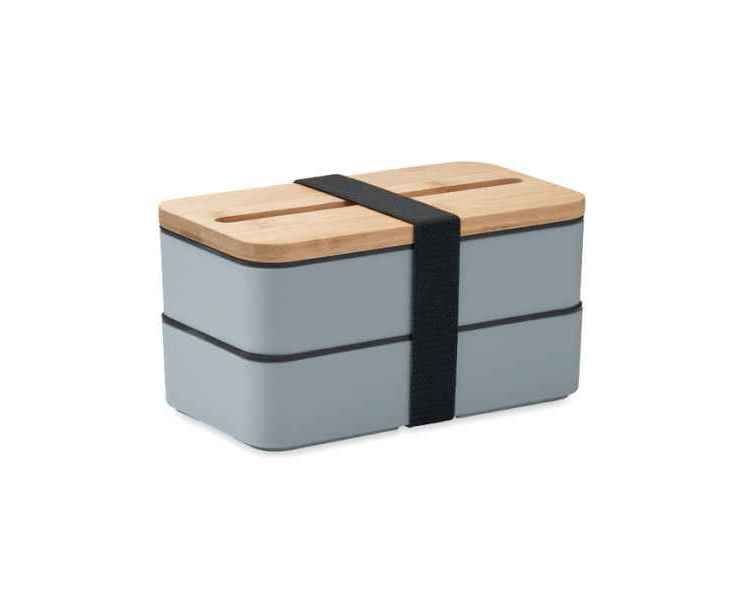 PP two-tier lunch box with removable divider and 3 cutlery utensils with attachable polyester band with bamboo lid. The lid has a phone stand functionality. Capacity: 400 ml (2x). Bamboo is a natural product, there may be slight variations in colour and size per item, which can affect the final decoration outcome.
