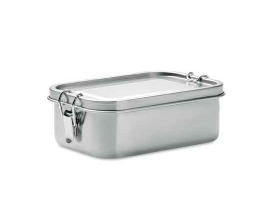 Ланчбокс из переработанной нержавеющей стали 90% и 10% нержавеющей стали с надежными боковыми застежками и скругленными углами. Объем: 750 мл.