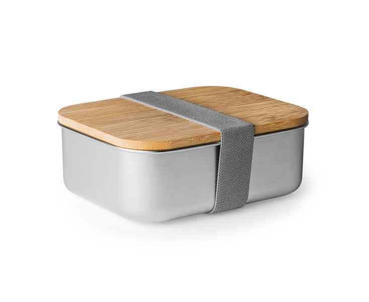 Ланчбокс из нержавеющей стали с бамбуковой крышкой и защитной лентой из полиэстера. Емкость 800 мл. Идеально подходит для персонализации и продвижения вашей компании.
