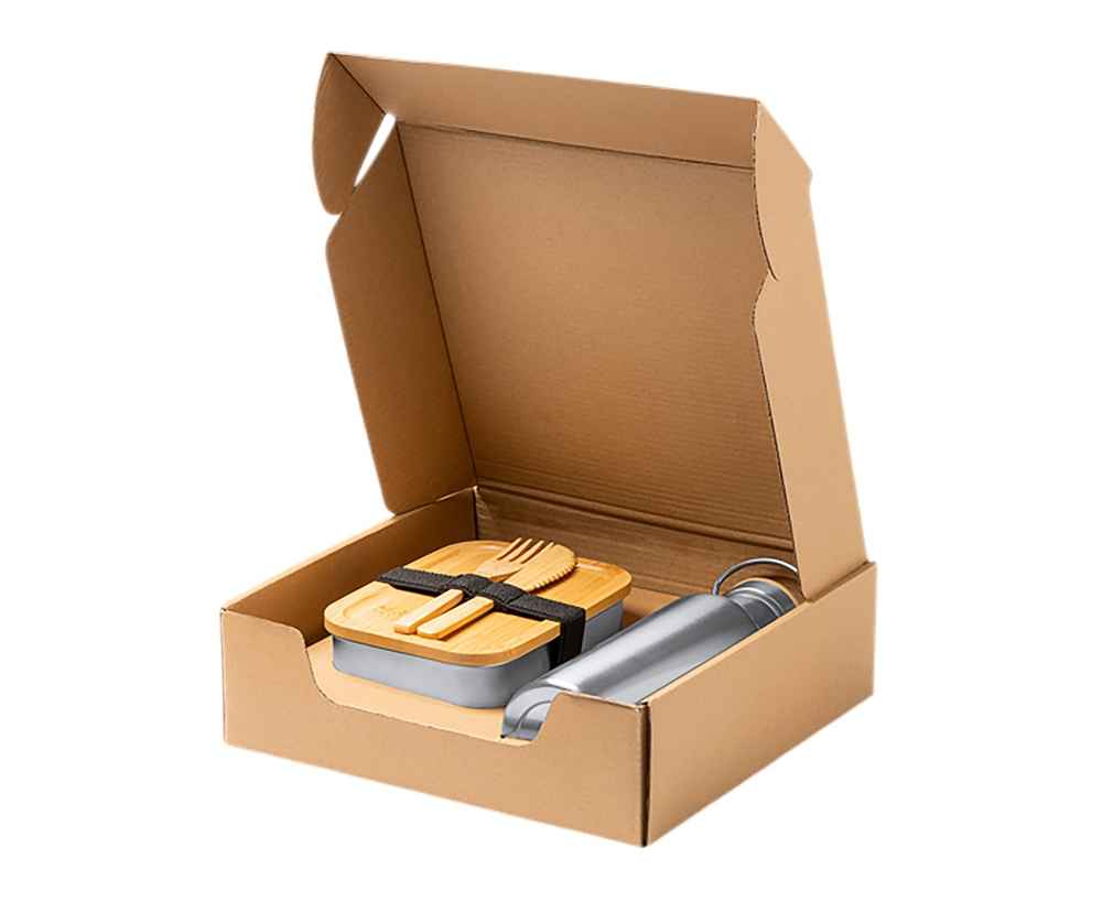 Полноценный обеденный набор из экологичных материалов. Подходит для офиса, учебы, путешествий или пикника. Поставляется в стильной экологичной коробке — отличный вариант для подарка.