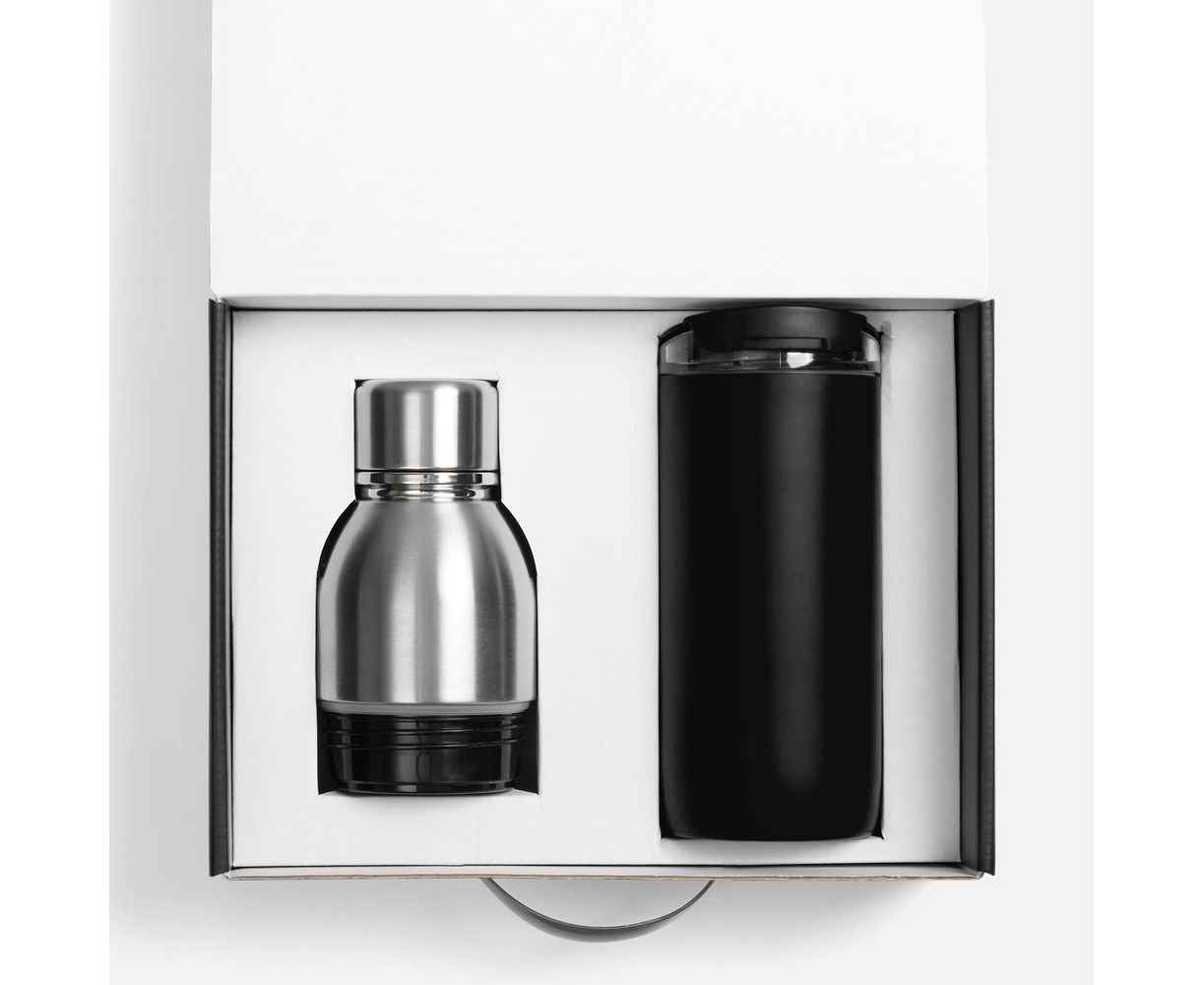 Varianti — это яркий пример посуды с двойной функциональностью. Один и тот же корпус можно превратить как в термостакан для чая и кофе с пластиковой крышкой, так и в термобутылку для прохладительных напитков с крышкой стальной.