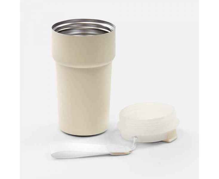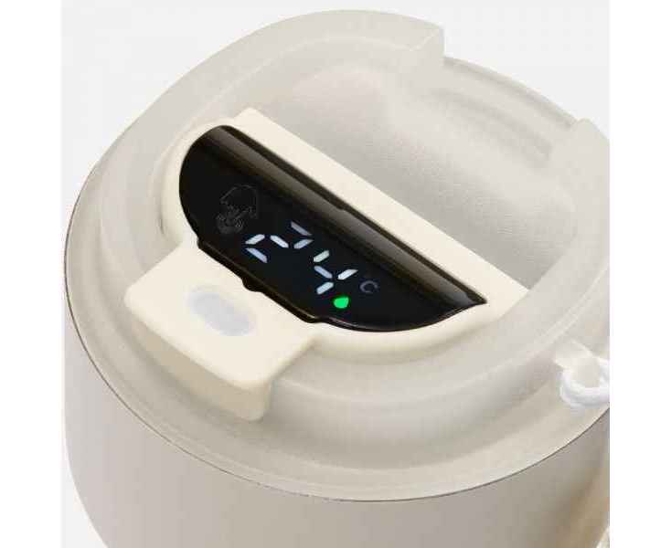 Двухслойная конструкция из нержавеющей стали с вакуумной изоляцией корпуса сохраняет напитки горячими (60 °C) или прохладными (10 °C) в течение 6 часов. При изменении температуры меняется цвет индикатора: для холодной воды он зеленый, для теплой — оранжевый, и для горячей — красный.