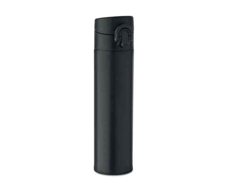 Термобутылка с двойными стенками из переработанной нержавеющей стали 90% и 10% нержавеющей стали с замком от проливания на крышке и опцией нажатия для открытия. Герметичная. Емкость: 300 мл.