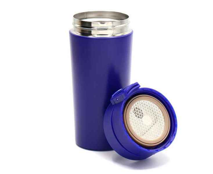 Модная и современная термокружка AMATTO для практичных покорителей городских и загородных ландшафтов! Крышка данного типа позволяет перемещать любимые напитки в салоне авто без досадных проливаний во время поездки. Именно благодаря данному специальному механизму термокружка полностью герметична. Крышка легко открывается нажатием кнопки, также имеется блокиратор от случайных нажатий. Для удобства использования имеется защищенное от воздействий внешней среды питьевое отверстие и ситечко. Полуматоваое покрытие выгодно отличает эту кружку от всех остальных моделей! Цвет кружки максимально приближен к пантону Reflex blue C pantone