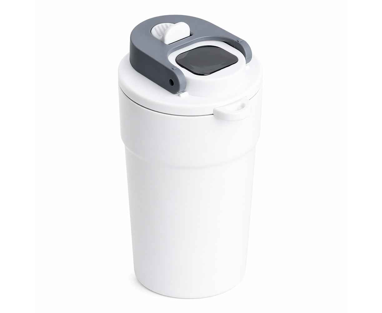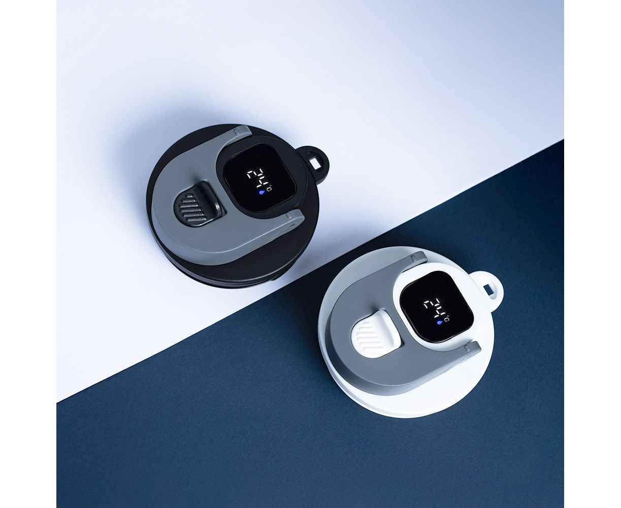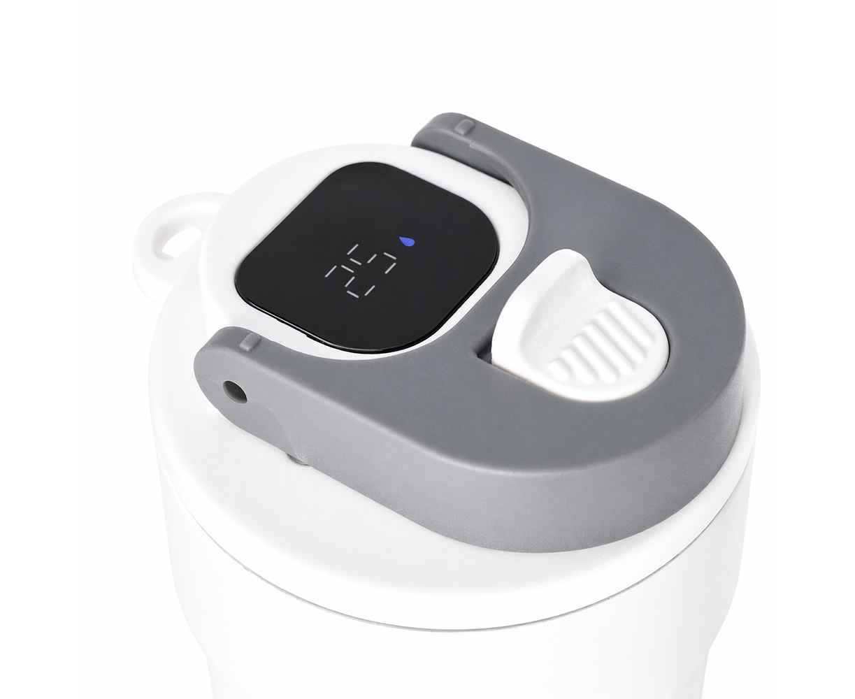Крышка из пластика с откидным механизмом на кнопке-защёлке. LED-дисплей в крышке — точная температура напитка в реальном времени.