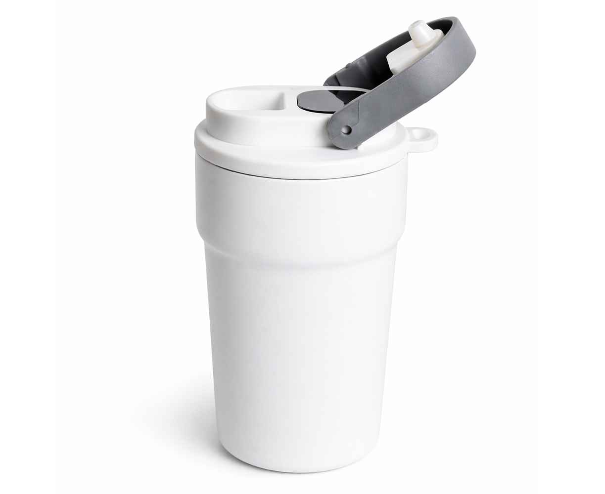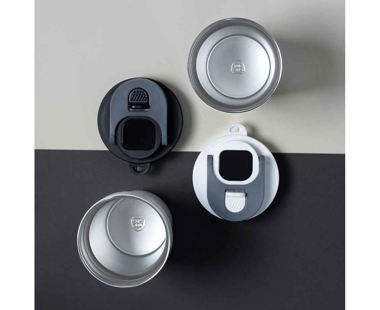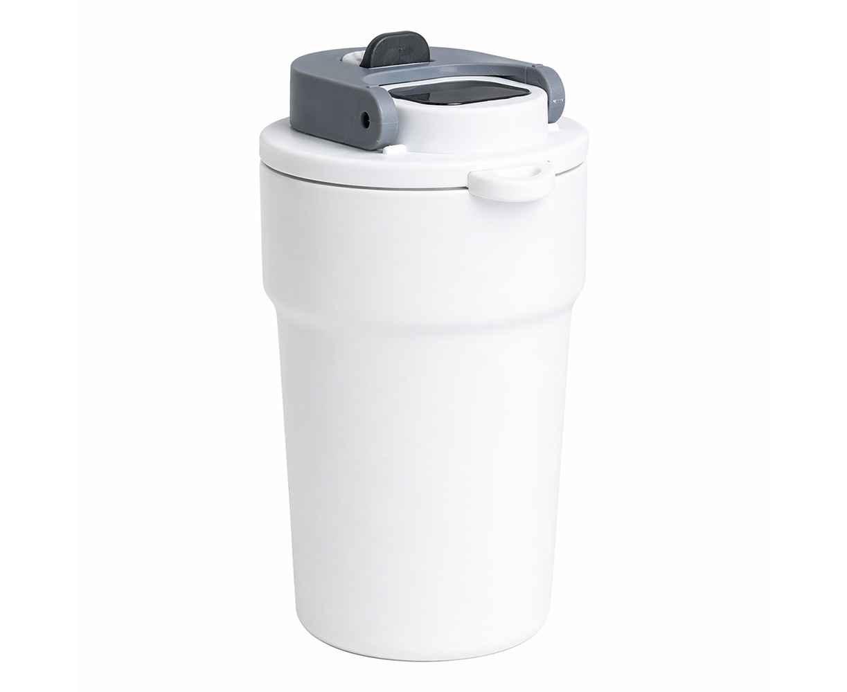 Крышка из пластика с откидным механизмом на кнопке-защёлке. LED-дисплей в крышке — точная температура напитка в реальном времени.